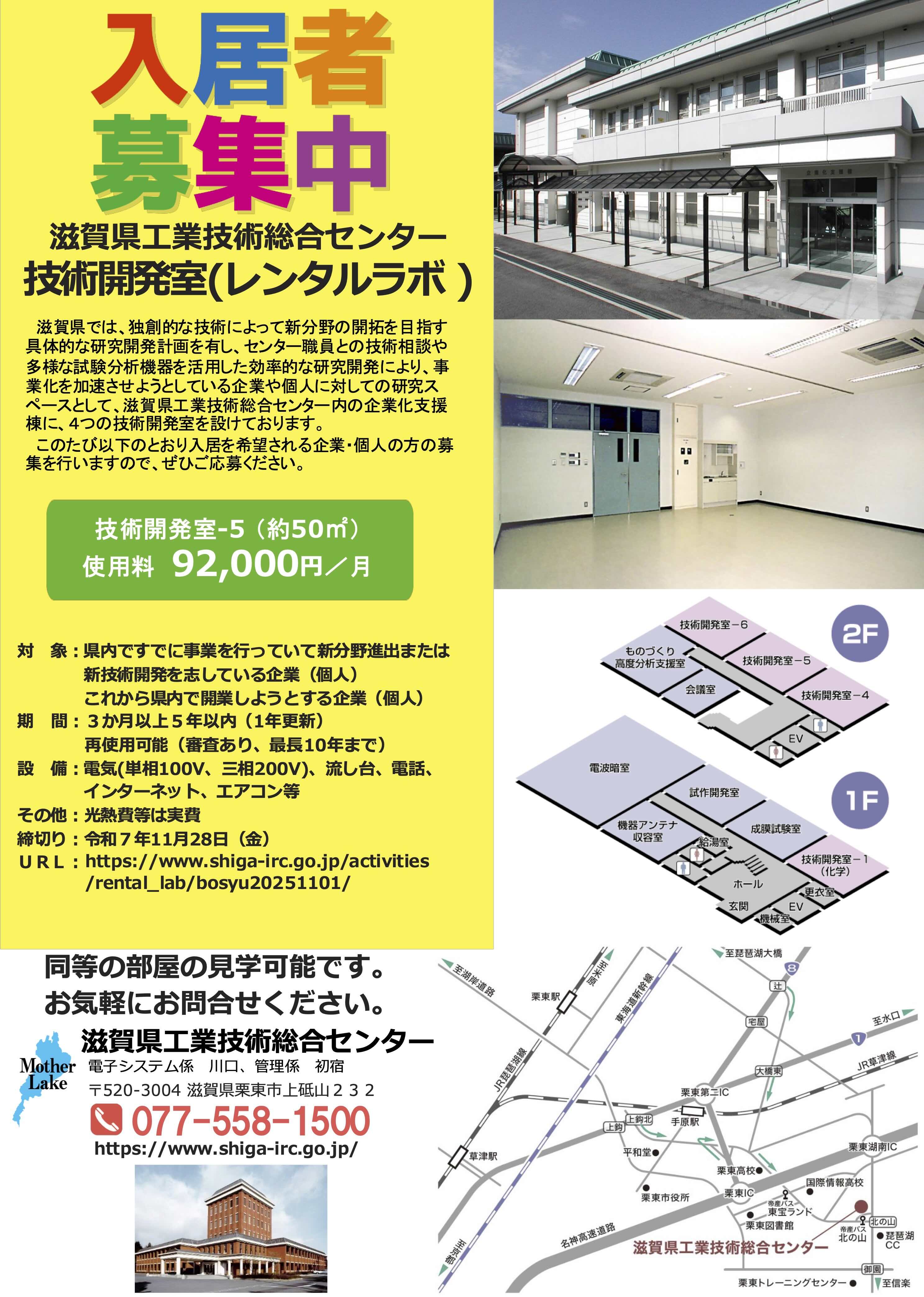 滋賀県工業技術総合センター 企業化支援棟 技術開発室 (レンタルラボ)