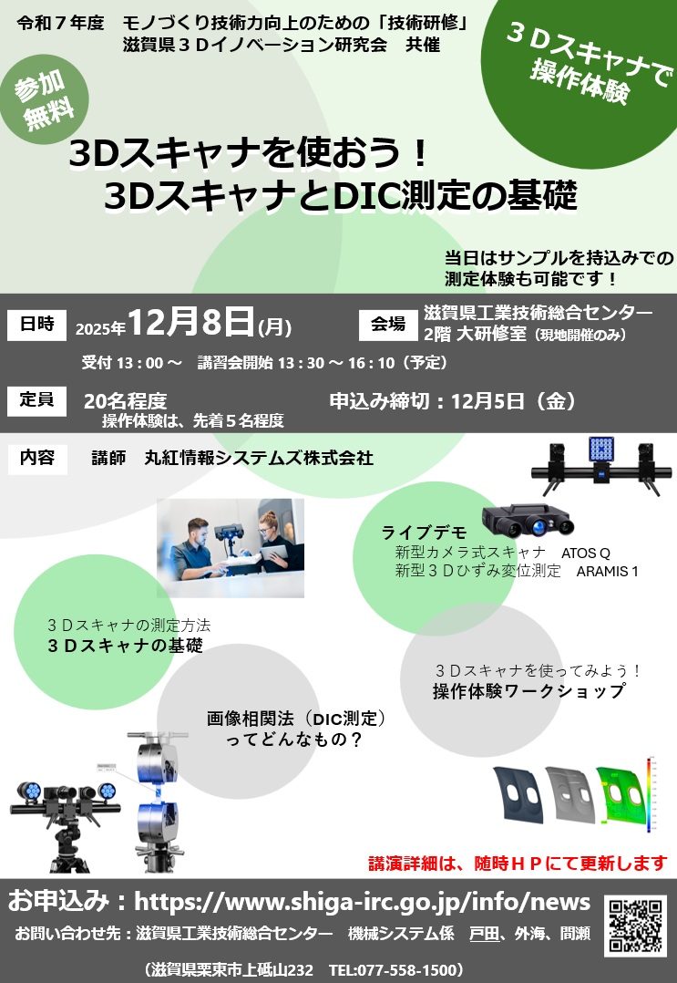 12/8(月)技術研修「3DスキャナとDIC測定の基礎」開催のお知らせ
